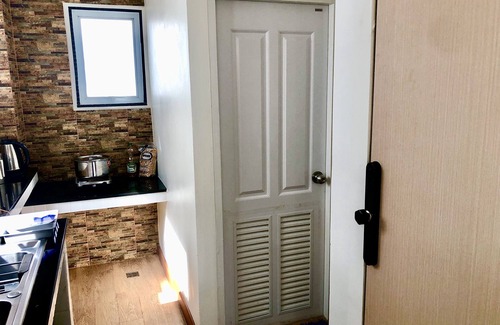 There is a fully stocked kitchen, fridge, hotplate, and kettle that are enough for you to cook a meal for 1-2 people.