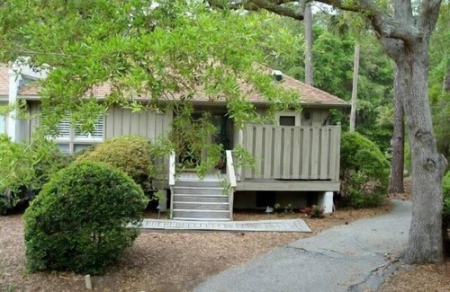 The cottage is in the West Beach area at the end of a cul de sac, which provides privacy and access to twenty miles of bike paths with one leading to Freshfields Village for shopping and ( ice cream ). It has a canopy of a beautiful live oak tree that frames the cottage entrance. The Cougar Point Golf Course is just a few minutes walk as is the lovely 10 mile hard packed sand beach.