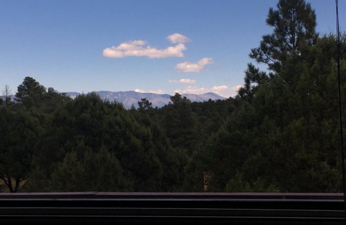 Escape from the busy hustle and bustle in this gorgeous 2 bedroom 1 bath fully furnished condo nestled in the mountains. Enjoy gorgeous views while sipping hot cocoa by the wood burning fireplace, or outside on the private patio. Watch the abundance of deer and wild horses as they graze their day away. Its prime location to ski slopes is less than a half mile from Ski Apache turn off, the Winter Park sledding, softball fields, and 5 minutes away from downtown Ruidoso. Beautifully decorated with high end furnishings. Beds have memory foam mattresses and soft comfty linens with electric blankets for cold winter nights. Soak in the gorgeous claw foot tub (no stand up shower) that looks out to El Capitan Mountain. Peaceful, lovely, and quiet surroundings with enclosed basketball and tennis courts, outdoor seasonal swimming pool, and a huge club room available to our guests with pool table, ping pong, full kitchen, TV, fireplace, and wi-fi(Pool and club room currently closed due state orders for COVID-19)