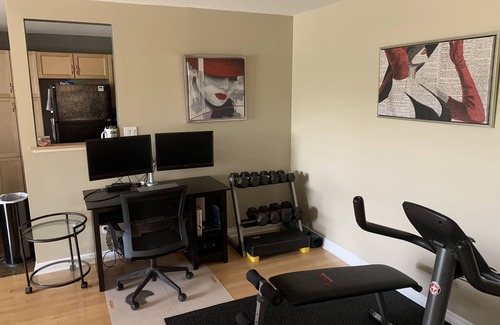 Fully furnished walk up condo. New furniture and smart screen tv. Mini fridge & freezer for drinks and food. Computer desk and exercise equipment in the condo. Lots of space.