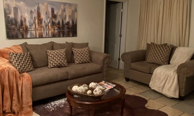 This unique bohemian style cottage with a open living room and dining room. Spacious kitchen, 2 bedrooms, 2 bathrooms and a deck on the back for outdoor dining. It’s 7minutes (3.4 mi) from North Mississippi Medical Center and 9 minutes (4.7) miles from Downtown Tupelo, MS. We are Pets and Family Friendly! We welcome 30 plus days renters. We offer high speed internet, and it has a workspace in the master’s bedroom. This house has everything you will need to relax and unwind after a long day of work! We offer Roku TV’s for all of your streaming needs. This home will accommodate 3-5 guests. Parking on front of the property! #Welcome #vrbo