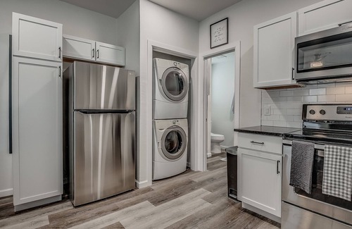In the new kitchen you'll find all the essentials for cooking and you have a washer and dryer on site for your convenience.
