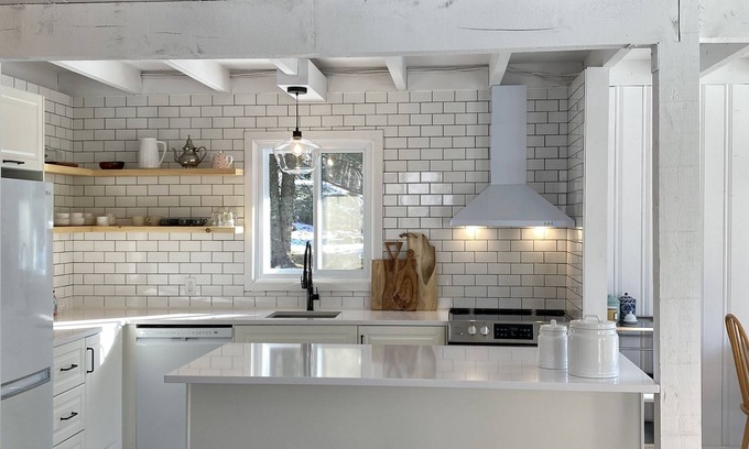 Renovated in 2021! LONG-TERM /RENTAL. Cottage with open Kitchen, Bathroom and furniture while keeping a VINTAGE VIBE + Garage & LOFT (mini kitchen + bathroom). Location is ideal for Ski, Sutton Village, access to private neighbourhood lake (swimming + skating) 3 blocks away. Itβs on a quiet road.Thereβs a forest in the back + garden with picnic tables and a fire pit.