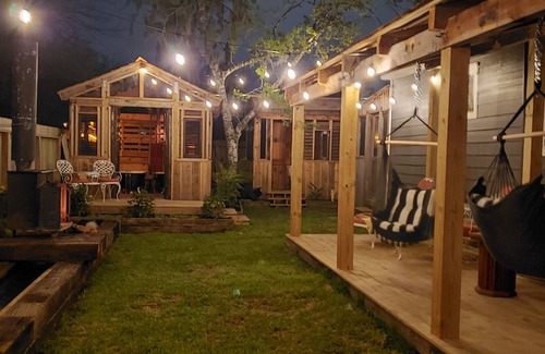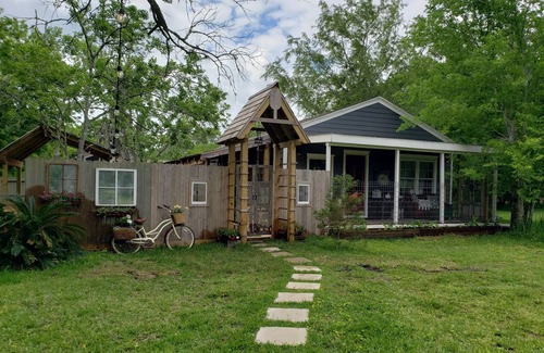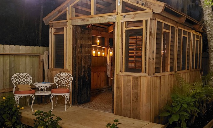 This 1900s cottage was formerly a barracks at Ellington Airforce base and has been completely updated. It is a two-bedroom cottage with one bathroom inside with a large walk-in shower with huge rainfall shower head, there is also a large clawfoot soaking tub. There is a separate bathroom outside. A very spacious living and dining area and fully equipped kitchen. The main bedroom has king bed with an attached screen porch. The second bedroom is a queen murphy bed with a desk. Just off the living/dining area is a large front porch to enjoy your morning coffee or a glass of wine.