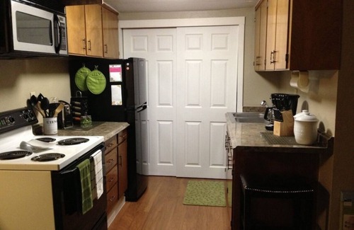 440 sq. ft. 1 bedroom cottage, just minutes to the entrance to Olympic National Park Visitor's Center, downtown, shopping, and dining. The guest cottage is surrounded by a gorgeous, woodsy landscaped yard and gardens on owner's property. Flagstone path leads to this intimate and charming cottage. Recently renovated with new carpet, furnishings, and a queen bed that replaced the previous double bed, this cottage is decorated with a combination of charm and elegance. All the comforts of home are in place for a relaxing weekend or extended stay. Enjoy coffee or outdoor dining on the patio as you overlook and enjoy the gardens. Relax in front of a cozy "fire" from the electric insert in the fireplace. Do laundry as needed in the washer and dryer.