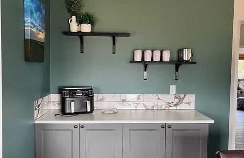 Kitchen - Air fryer, oven, microwave, coffee machine, toaster, cutlery and other necessities. Also has full dining room table and space.