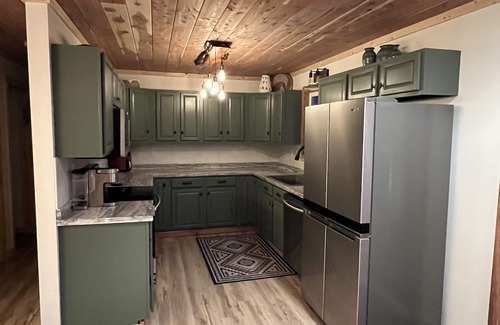 This newly remodeled home sleeps 6 with 2 bedrooms, 2 full baths, fully appointed kitchen- Amenities in kitchen include an air fryer, blender, double toaster, Keurig coffee maker with assorted pods and bottled water for brewing provided ( the tap water is delicious natural spring water but is hard on the coffee maker), knife set, crock pot, Kitchen-aid mixer, electric wine opener, can opener, pots and pans, cutting board, cookie sheet, popcorn popper and popcorn provided. Paper plates,cups and disposable silverware for outdoor dining.