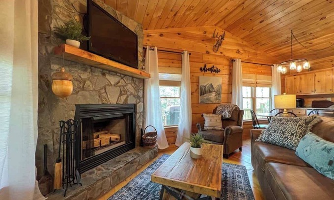 Cozy Couples Cabin, Hot Tub, Fire Pit, Grill is located in Blue Ridge. Cozy Couples Cabin, Hot Tub, Fire Pit, Grill provides accommodation, featuring Fireplace/Heating, Laundry, TV, among other amenities. This Cabin features Fireplace/Heating, Laundry, TV, to make your stay a comfortable one.