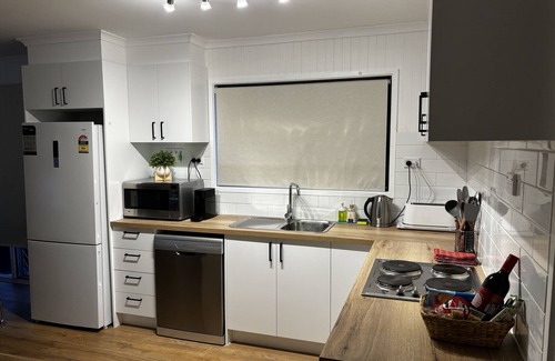 The kitchen is fully appointed with all of the creature comforts and equipped with cooking utensils, crockery, cutlery, tea towels, full-sized microwave, coffee pod machine with an assortment of coffee pods for all tastes, toaster, kettle, sandwich maker, full size fridge, dishwasher, electric oven and stove top.
