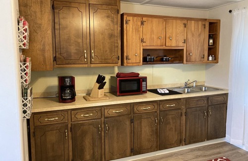 SLEEPING: 1 Queen Bed in Bedroom, 2 Drop Down Sofas in Living Room. Perfect for a solo traveler, a couple, two couples, or a small family!