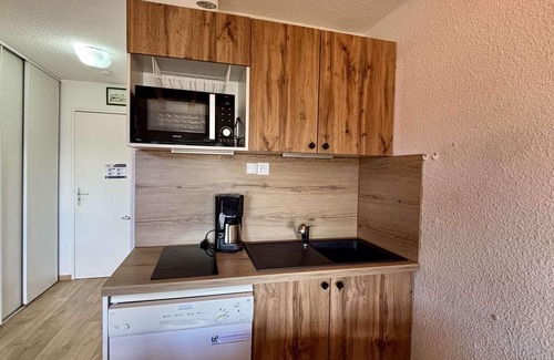 Mezzanine : 2 single beds (2X80 cm), a single BZ sofa (90 cm) and a double BZ sofa (150 cm) Kitchenette: 2 ceramic hobs, microwave grill, dishwasher and coffee machine