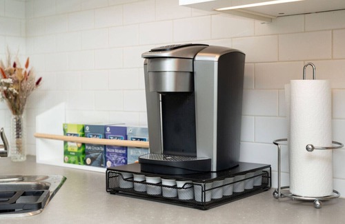 Adjacent to the kitchen, the dining table invites you to gather for shared meals or lively conversations. To make your mornings extra special, the home also provides complimentary coffee, ensuring you start your day on the right note.