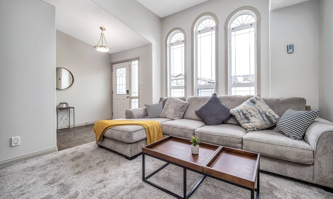From the moment you open the door you will be welcomed by a cozy environment where you can feel at home. This space is where comfort meets chic. The main floor consists of an open concept living room and kitchen with a dining area and computer nook to the side. Home has air conditioning. Carpets inside have recently been updated to give it that brand new feeling. The prairie style living room windows gives this space a unique appeal. Across the street is a park and huge field to enjoy any games or sports with the family. The home can entertain up to at least 6 people comfortably and is perfect for families or smaller groups. (If your group is larger than 6 contact host for further options- there is a second unit attached that is a private unit that may be rented for larger groups).