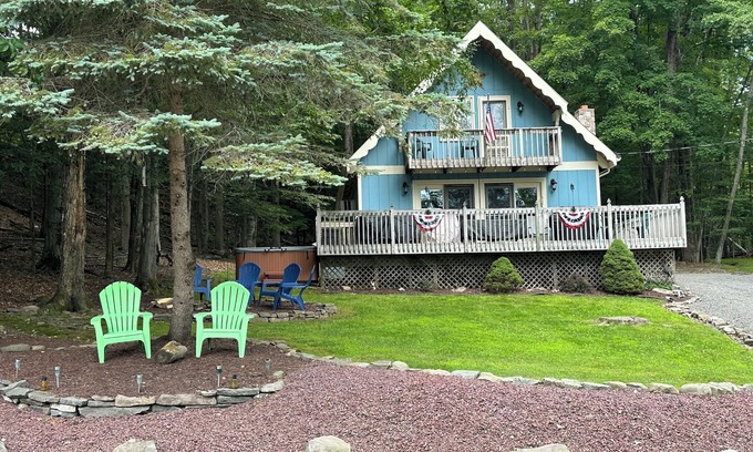 Enjoy a relaxing getaway in a cozy Lake House on picturesque Lake Wallenpaupack, Greentown, PA. Chalet style home (3 BR, 2 Bath) in a family community on Lake Wallenpaupack. Walk to the Recreation Center w/ heated pool, playground, sand volleyball court & horse shoe pits just steps away from the lake. Tennis courts, ball fields and 2nd community pool located nearby. House equipped with Washer/Dryer and Large Deck w/ BBQ. Bring your Boat, Jetski or Kayaks and enjoy relaxing or fishing in the lake!!