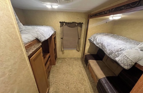 Welcome to this charming recreational vehicle in Camarillo. This fabulous property offers a wonderful getaway for guests seeking a unique and beautiful vacation experience. With 2 cozy bedrooms featuring a queen bed, a bunk bed, and a full bed, you'll have a comfortable and relaxing stay. Enjoy the convenience of amenities like AC, heating, and WiFi and a fully stocked kitchen.The bathroom is well-appointed for your needs. We offer complimentary s’mores and fire. For an extra fee a movie night outside! It includes movie, popcorn, drinks and candy. Enjoy a vacation away from home camping style.