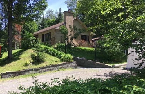 Make some memories at this unique and family-friendly place. Stay in a private place around the forest. Near to private beach 7 min walk (17$ fee per person per day) Tennis court and ski mont habitant. This space is ideal for families with kids. Playground area, pool table, sauna, hot tub (SPA). All equipped.