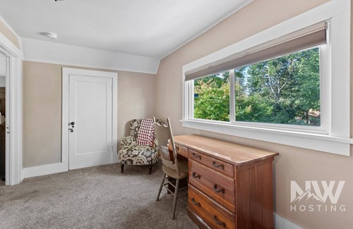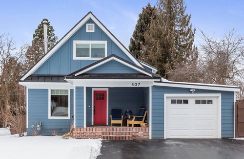 After a day on the slopes, retreat to our refined 5-bedroom, 2-bathroom farmhouse in Coeur d'Alene. Newly renovated, it combines modern amenities with timeless charm, ideal for gatherings of up to 12 guests.