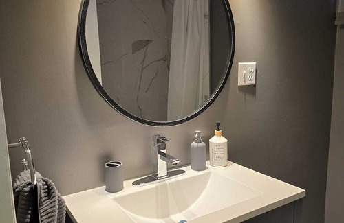 Have fun at this stylish place. A cozy, artsy newly renovated one bedroom full unit (Basement unit of a nice house) in a quiet area. Separate entrance and full separate laundry. You can have your perfect privacy living in your own space. Free parking space and Wi-Fi. Check in is easy and flexible after 4pm no need to worry about what time you arrive. You can peacefully stay at this clean apartment of yours, private bathroom, kitchen with a huge fridge, all cookware, dining and sitting area.