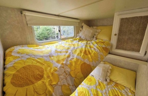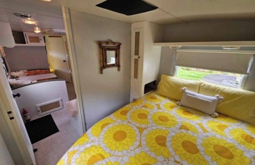 Calling all getaway seekers, welcome to our guesthouse, also known as Daisy! A beautifully restored camper for your one-of-kind vacation experience or romantic getaway. This cozy camper offers plenty of room for a family of four and sleeps up to 7 people in total. It hosts a kitchen complete with propane range, microwave, and refrigerator, as well as a bathroom equipped with sink, shower, tub, and toilet. This unit also boasts two heaters and A/C for those hot summer days. Also available for your use is a barbecue, private patio area, and fire-pit. Wake up to breathtaking natural beauty in your large private yard space. Cozy up by our fire-pit, bathed in a soft light, and let the day melt away as you unwind under the stars. Forget the hassle of driving for hours to reach your destination or lugging around heavy camping gear. Daisy has everything that you need. More than just a place to stay, our guesthouse is conveniently located minutes to amenities including a spa right next door, shops, pubs/restaurants, lakes, hiking trails, a petting zoo, movie theatre, and even a water park. Come and experience endless opportunities for adventure in a beautiful setting and unmatched comfort.