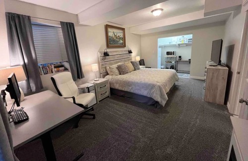 Wind down after a day of adventure on the comfortable, king-size bed. Enjoy some Netflix or login to favorite subscription on the 50" 4K smart TV. If you prefer to read, we have a small library of literature and maps including a number of books on topics of local interest. We also have some board games in the room. There is a nice office space with a desk, monitor, keyboard, and mouse, so you can hook up your computer and get the job done. A printer is available by request.