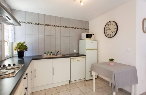 This cozy holiday home in Berre-Les-Alpes is ideal for up to 5 guests, offering a peaceful escape in the hills of Provence-Côte d’Azur. The ground floor features a fully equipped open kitchen, a comfortable living/dining area with international TV and DVD player, two bedrooms—including one with a 3-person bunk bed—and a bathroom with shower. Electric heating and insect screens ensure year-round comfort, while free Wi-Fi and pet-friendly amenities make it perfect for families.
