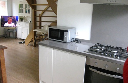 The house was renovated in 2010 and a large extension was realized in 2015/2016. It offers space for 4-6 people. Pets are allowed. 105 m2 floor area, luxury kitchen, bathroom (walk-in shower, WC, washbasin), second toilet, and attractive room and spacious bedroom with double bed on the ground floor with adjoining shower / bathroom. The two upstairs bedrooms each have two separate single beds and in one room also 1 double bed. Possibility of a cot and high chair is available. In addition to the third bedroom with a double bed on the ground floor in the extension, is a walk-in shower with sink. There is also a second toilet in the extension.