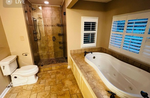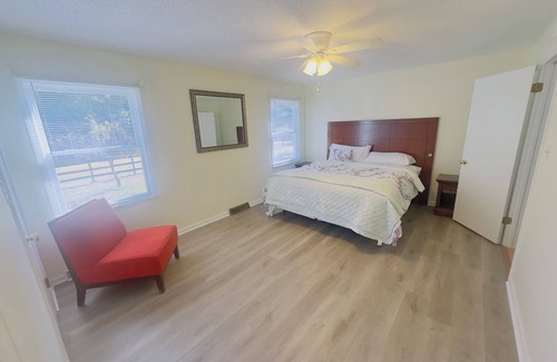 Located in Waxhaw, enjoy what this 4-bedroom farmhouse has to offer. With 1 king bed, 2 full beds, and 1 queen bed, this brilliant property provides ample space for guests. The farmhouse also features WiFi, heating, a washing machine, AC, a hair dryer, and an iron. The 3 bathrooms are equipped with a hair dryer and a jetted bathtub. Additionally, there is an extra living room with a sofa bed. Kickback, relax, and enjoy everything Waxhaw and our farmhouse has to offer.
