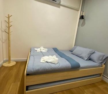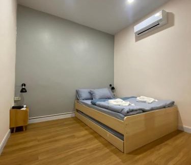 Food & DrinkTea/Coffee maker, Bottle of waterBathroomFree toiletries, Private bathroom, Shower cap, Toilet paper, Toilet, Shampoo, Towels, Shower, Hairdryer, Body soapMedia & TechnologyTV, Flat-screen TVGeneralKey card access, Fan, Air conditioning, Trash cans, Tile/Marble floorKitchenKitchenette, Kitchen, Electric kettle, Microwave, Refrigerator, KitchenwareLiving AreaSofa, Dining area, Sitting areaOutdoorsPatioAccessibilityEntire unit located on ground floorBuilding CharacteristicsPrivate apartment in buildingRoom AmenitiesSocket near the bed, Clothes rack, Sofa bedPhysical distancingSingle-room AC for guest accommodationCleanliness & disinfectionHand sanitizer |