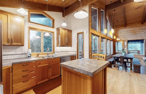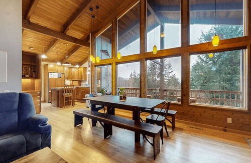 Begin your day on the expansive wraparound deck as you sip your morning coffee, listening to the gentle rustle of trees. Whether you're looking to unwind in solitude or explore, you're perfectly positioned: lively spots like Rockaway Beach and the dog-friendly trails at Kilchis Point Reserve are just minutes away, while local treasures like Tillamook Creamery, Oceanside Beach State Recreation, and Tillamook State Forest are all within 17 miles.