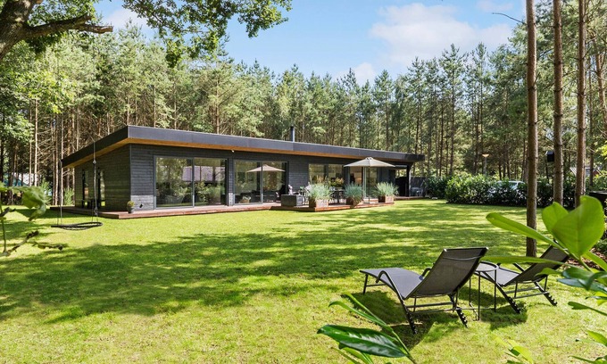 The spacious plot offers plenty of room to play and relax. Enjoy the sun on the wooden terrace that runs around the wood and watch the children jump on the trampoline. In the three shelters you can watch the deer and squirrels that visit regularly. End the day with a dip in the open-air whirlpool.