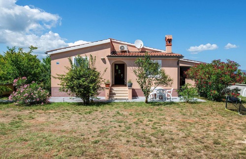 With an idyllic view of the sea and the countryside, this practical vacation home Kavran welcomes you.