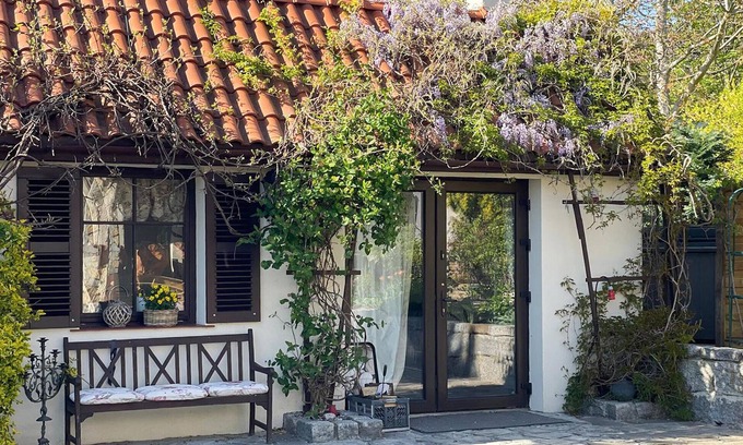 Discover this special retreat surrounded by lush nature and lovingly designed details. Your charming holiday home exudes its very own magic with its elegant furnishings, wood-burning stove and romantic terraces. Treat yourself to relaxing days in this holiday oasis. The beautiful living area impresses with comfortable upholstered furniture and atmospheric lighting. Put your feet up and round off the day by the crackling wood-burning stove. Use the kitchen to cook together and enjoy your meals at the rustic dining table.