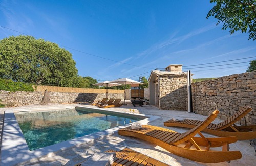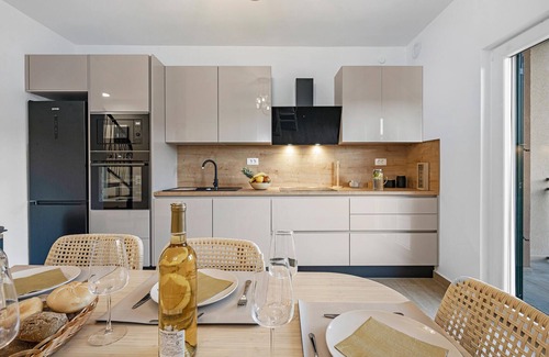 Your holiday home in Radonic, near Sibenik, offers you a private pool with comfortable loungers and modern living spaces that invite you to linger. Relax on the sunny terrace or enjoy the evening with a glass of wine on the balcony overlooking the idyllic surroundings. Dive into the pool and soak up the tranquillity of nature. Spend cosy hours in the stylish living room, which is furnished with a comfortable sofa area. A lovely place to relax after a day of adventure. The kitchen is well equipped and the adjoining dining table offers the opportunity to spend cosy evenings together.