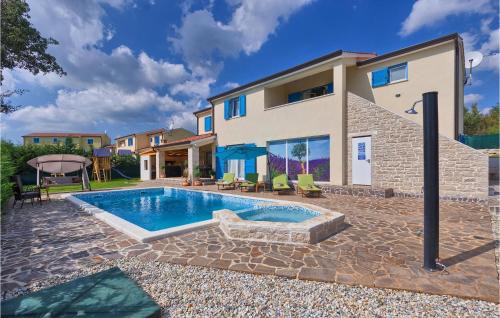 Cozy Home In Naselje Muzini With Sauna is located in Tomišići, just 14 miles from Cathedral St. Eufemia Rovinj and 19 miles from Pula Arena. This property offers a private pool, free Wifi, and free private parking. The vacation home has an outdoor fireplace and a sauna. The air-conditioned vacation home consists of 5 bedrooms, a living room, a fully equipped kitchen with a dishwasher and a coffee machine, and 6 bathrooms with a shower. A TV is featured. The property has an outdoor dining area. Outdoor play equipment is also available at the vacation home, while guests can also relax in the garden. Morosini-Grimani Castle is 3.1 miles from Cozy Home In Naselje Muzini With Sauna, while Dvigrad Castle is 5.6 miles away. Pula Airport is 21 miles from the property.