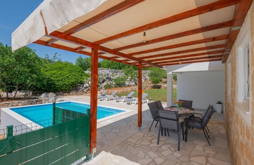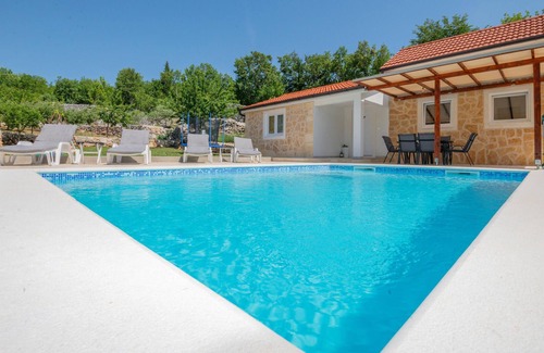 This beautiful stone vacation house is located in a natural environment in the small town of Poljica Imotska, not far from the town of Imotski. It was built in the original Dalmatian style and warmly decorated and equipped in a secluded spacious garden. In front of it there is a spacious pool, a children's playground and a covered terrace with a barbecue, which will further complement your stay. Imagine being able to just jump into the pool on hot days, while your children romp around the playground and the grill is already heated to try imitating Croatian dishes.