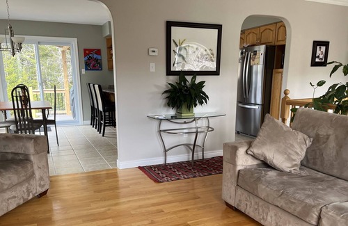 Relax with the whole family in this peaceful, cozy and bright home. The open concept living space allows you to stretch out and relax after a fun-filled day exploring nearby beaches and trails. Enjoy the fresh air, and plenty of sunshine either on the front stone patio, or on the large back deck perfect for barbequing and taking in the cool evening breeze. Spend the evening chatting by the outdoor firepit, under the stars, listening to the peepers and watching fireflies.