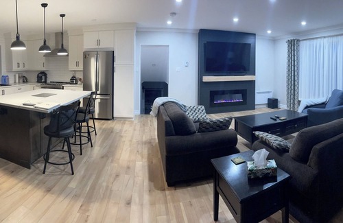 This is a family home located in Little Rapids in the Humber Valley area, 15 minutes from Corner Brook. Guests will have access to the main floor of the house, which includes an open concept kitchen/living room, one bedroom (queen bed), and one bathroom. Guests will not have access to the basement, garage, or other locked rooms in the house. The house was recently renovated. It has a beautiful modern kitchen and open concept layout. There is a double-deck patio in the back, a fire pit, and a basketball court. The home has a well and a septic system. There is a big driveway - perfect for a truck and trailer if you are towing any watercraft or all terrain vehicles.