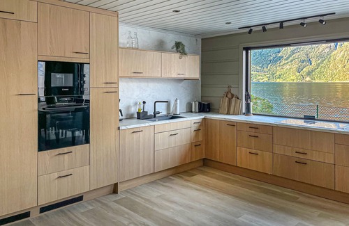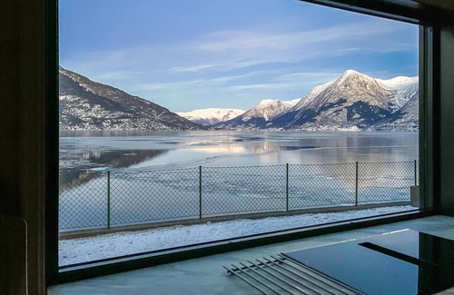 Enjoy your holiday in this exclusive holiday home with panoramic views over the fjord and mountains.