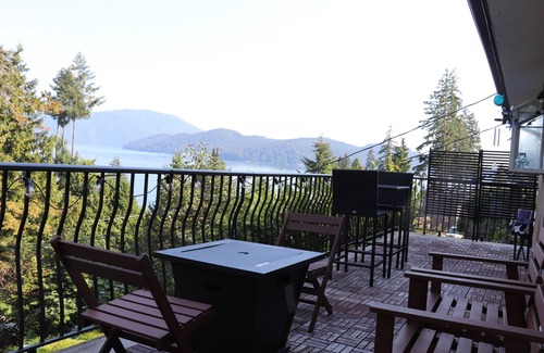 Our contemporary home offers stunning ocean and mountain views, surrounded by nature for a relaxing and rejuvenating stay. Enjoy the sunrise from the front deck and sunset in the backyard with a barbecue. Wake up to the sight of tall cedar trees and the peaceful ambiance of our property.