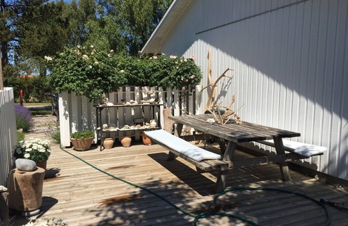We love our summerhouse and we know you will love it too. Feel free to use the wood for the fireplace, feed the birds in the birshouse in the garden if you like, use the hose for showering on the terrace and reel free to bring out our red chairs to sit in the garden.