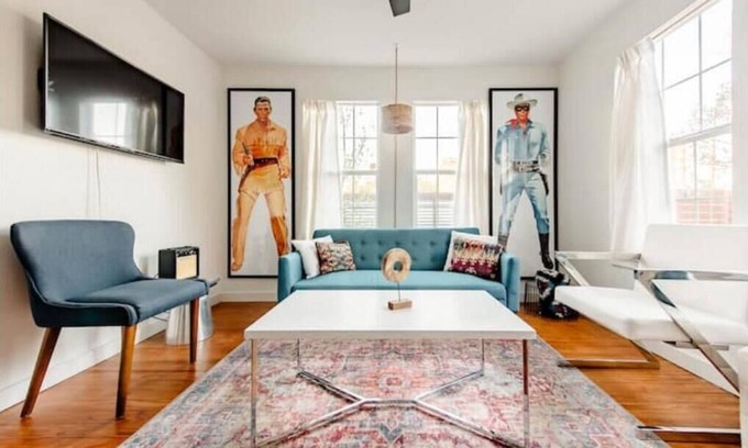 Cozy 2 bed/1 bath house with modern cowboy vibe, big backyard with picnic tables & lots of shade, centrally-located in East Austin for 30+ day rentals as your home away from home. Well appointed kitchen, cozy living room, all behind a sliding gate that gives you privacy and dedicated parking in this pet friendly oasis. Located on a quiet, well-lit alley. One mile to UT campus, Moody Center, walking distance to Sour Duck Market on MLK Blvd and many dining options on Manor Rd.