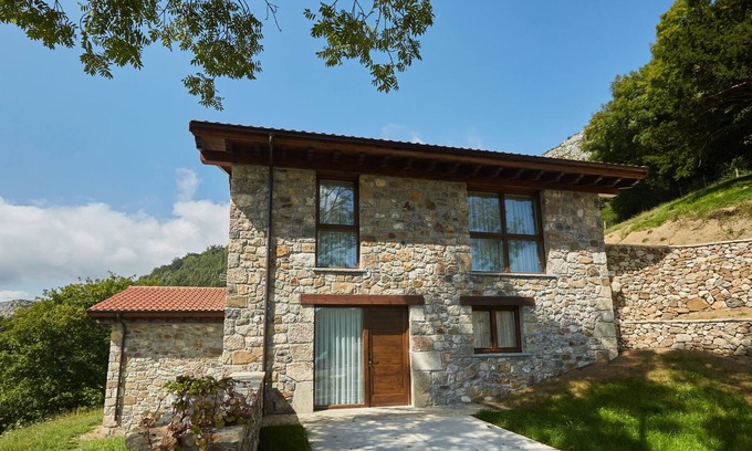 Preserved in original structure and materials, this 4-bedroom mansion in Cangas de Onís invites for a peaceful holiday. The mansion has indoor heating and a landscaped garden. Families and groups of up to 8 people will find it perfect. The mansion is ideal for relaxing and practicing nature activities. Explore the beautiful beaches of Ribadesella (13 km) and Llanes or the mountains of the Picos de Europa (15 km). Visit the Cangas de Onis Town Center at 7 km. From the large windows of the mansion, enjoy a beautiful view of the Picos de Europa, the meadows, and the valley. You have a fully equipped kitchen with a coffee machine to prepare hearty breakfasts yourself. The open kitchen is connected to the living/dining area so that you never miss a conversation. A cot can be requested for the toddlers. Summer evenings can be enjoyed with the barbecue and garden furniture. Parking is available here.The nearest airport is in Asturias, 100 km away. The airport in Santander is 130 km.