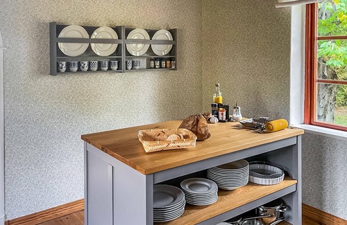 This is about a rustic cottage with an antique atmosphere. You will notice the playful wallpaper and the spiral staircase, which will give you a cozy feeling. Imagine spending wonderful hours in this rural house with your family, having breakfast and playing board games.