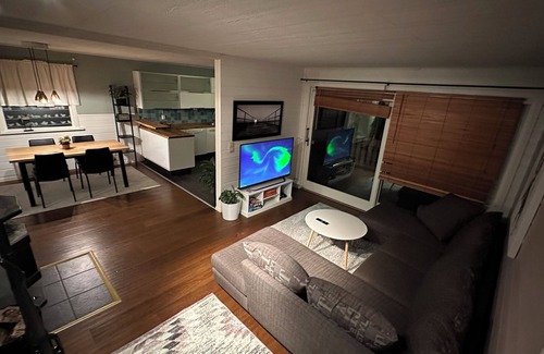 Grocery stores right outside the door. Pizza, Sushi, hairdresser and Eurospar. Do you want to see the northern lights or a trip to the mountains? Then it's a 5-minute walk to nature, the Arctic Cathedral, ski slopes or the mountain lift.