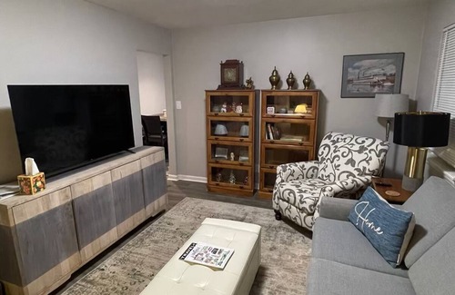 All brick home with brand new appliances and home is brand new on the inside. Remodeled early this year. it is furnished with many amenities, washer dryer, microwave, gas stove, dishwasher, large lot, quiet location, queen size bed in primary, full size bed in 2nd bedroom and daybed in 3rd bedrooms. Wifi, anything you would need in a kitchen. Pet friendly limited to dogs only.