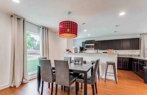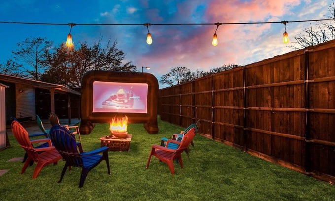 Stunning 3BR, 2BA house in Plano, TX for groups up to 10! Relax in style and entertain with an amazing outdoor theater: massive projector screen, firepit and comfortable seating. The house is beautifully decorated and features a fully equipped gourmet kitchen, luxury bedding. The location is convenient, minutes away from all the best attractions. Comes with Wi-Fi, and a designated workspace.
