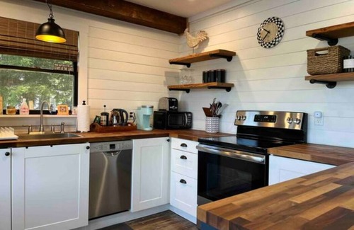 KITCHEN: Well-equipped, eat-in breakfast bar, Butcher block counters, toaster, fridge, stove, Keurig coffee maker, cooking basics, dishware & flatware