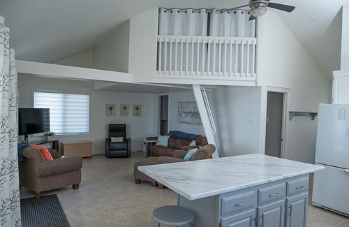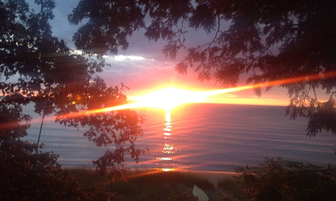A well maintained, lakefront, 4 season cottage with a private beach. A large hanging deck gives you a wonderful space to watch Grand Bend’s famous sunsets and a short 15 steps staircase takes you right to the water. The cottage is an open concept cozy space with 2 bedrooms, one with a queen bed and one with bunk beds (single). There is also a loft (with 2 queen mattresses) accessed by a ladder. A small patio at the front of the house is a warm spot for coffee in the morning. 5 minute drive to Grand Bend and 10 minute drive to Bayfield.