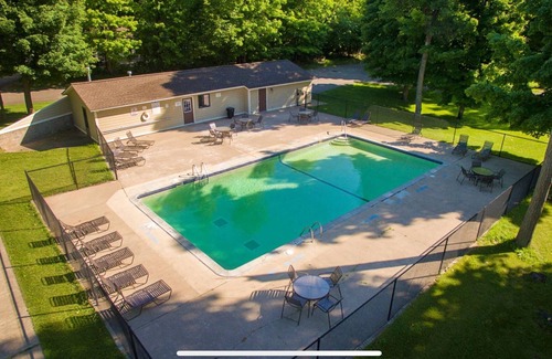 Yes, this Cozy Lakeside Condo has a swimming pool. Check the Facility Overview section for details about the pool and other available facilities.