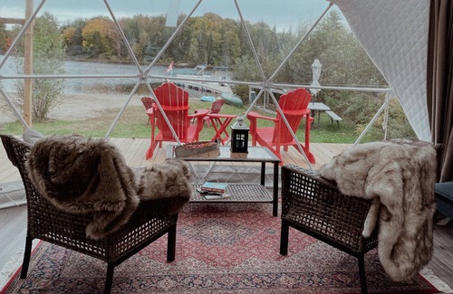 The Lakeview dome offers the perfect road-trip glamping experience fit with all the modern amenities found within the comforts of home! Nestled right on the beach of De Bois lake, the Lakeview Dome has incredible view. The wonderful open-space concept and natural light coming from giant window provide an atmosphere like no other.